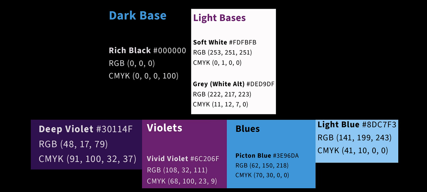 Three logos in light and dark modes. One thing you'll notice is that it is an updated version of the original design identity so that we can give proper props to them.